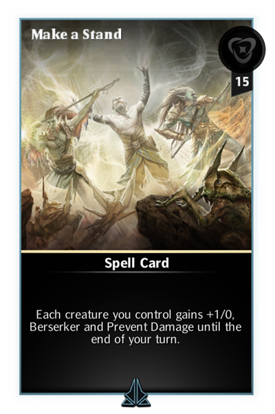 Each creature you control gains +1/0, Berserker and Prevent Damage until the end of your turn.