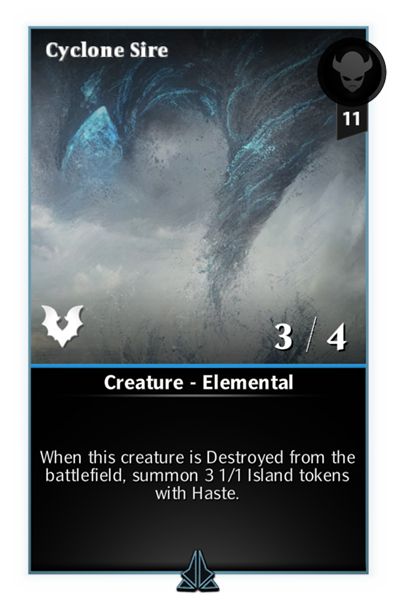 When this creature is Destroyed from the battlefield, summon 3 1/1 Island tokens with Haste.