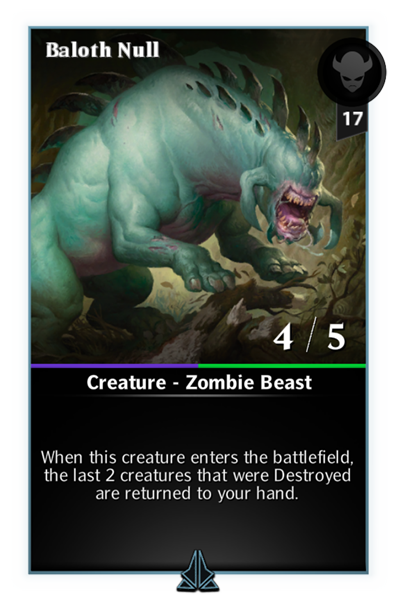 When a creature your opponent controls is Destroyed from the battlefield, summon 1 2/2 Zombie.