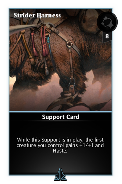 While this Support is in play, the first creature you control gains +1/+1 and Haste.