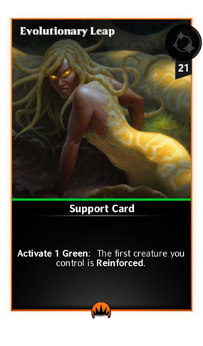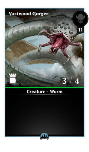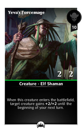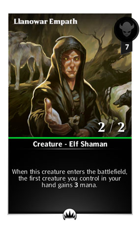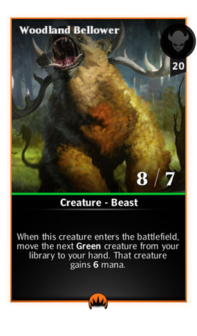 When this creature enters the battlefield, move the next Green creature from your library to your hand. That creature gains 6 mana.