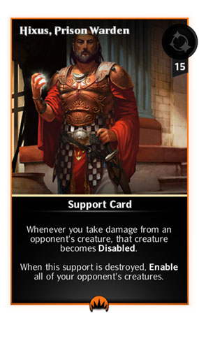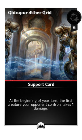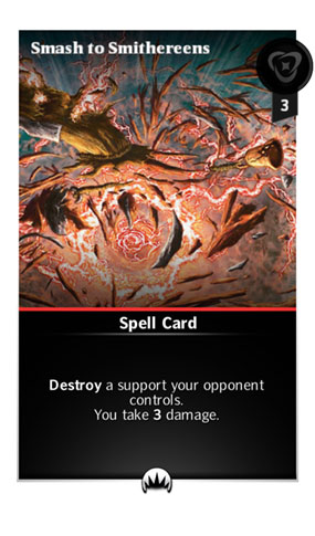 Activate 1 Red: Destroy the first support you control and deal 5 damage to your opponent.