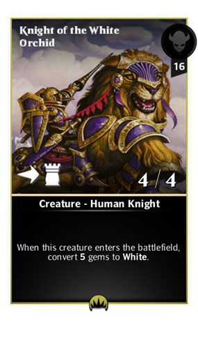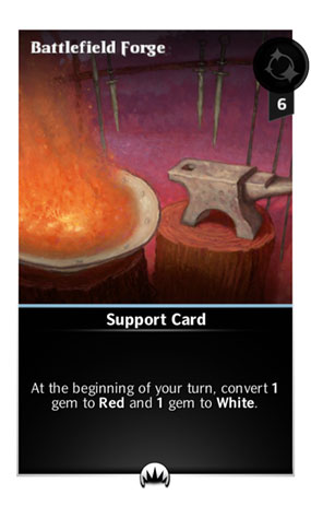At the beginning of your turn, convert 1 gem to Red and 1 gem to White.