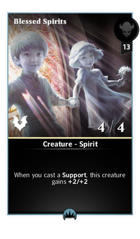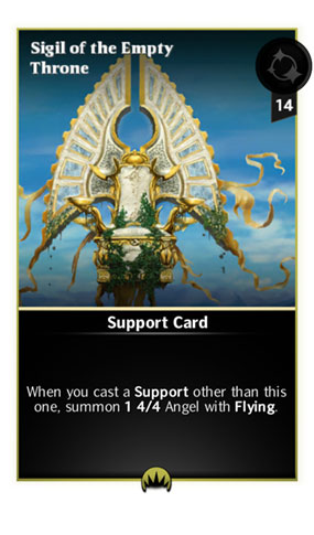 When you cast a Support other than this one, summon 1 4/4 Angel with Flying.