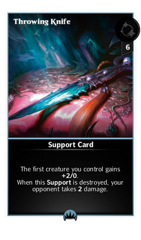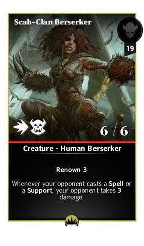 Whenever your opponent casts a Spell or a Support your opponent takes 3 damage.