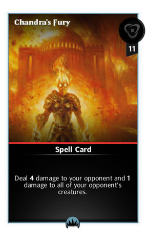 Deal 4 damage to your opponent and 1 damage to all of your opponent’s creatures.