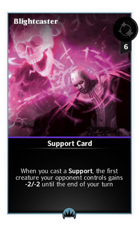 When you cast a Support the first creature your opponent controls gains -2/-2 until the end of your turn