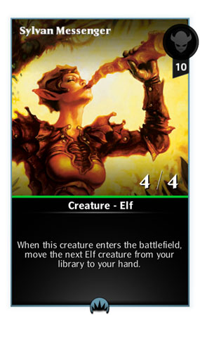 When this creature enters the battlefield, move the next Elf creature from your library to your hand.