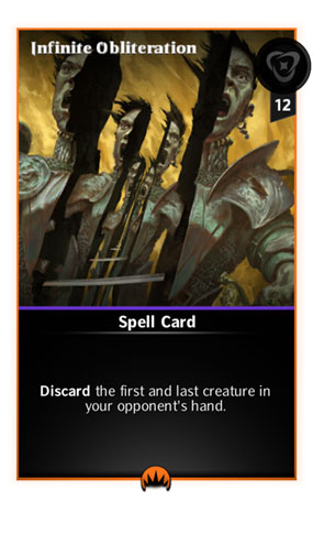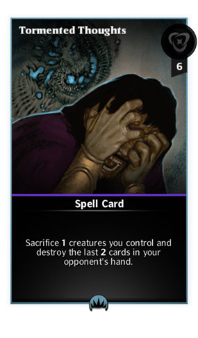 Sacrifice 1 creatures you control and destroy the last 2 cards in your opponent’s hand.