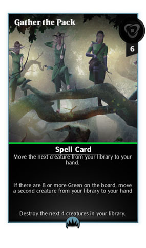If there are 8 or more Green on the board, move a second creature from your library to your hand