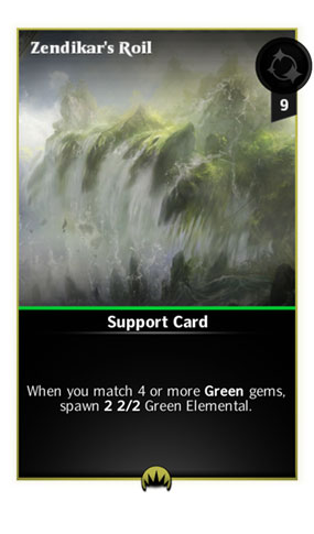 When you match 4 or more Green gems, spawn 2 2/2 Green Elemental.