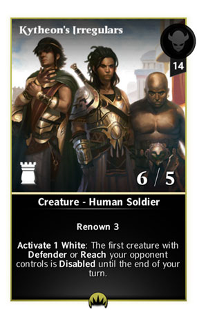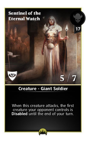 The first 2 creatures your opponent controls are Disabled until the end of your turn.