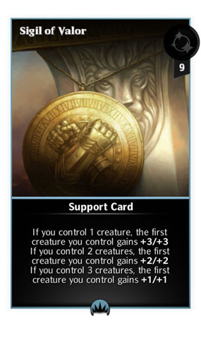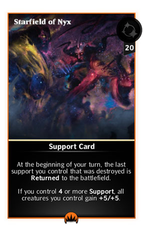 If you control 4 or more Support all creatures you control gain +5/+5.