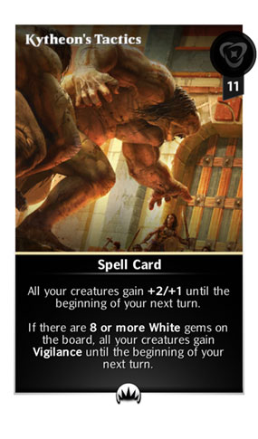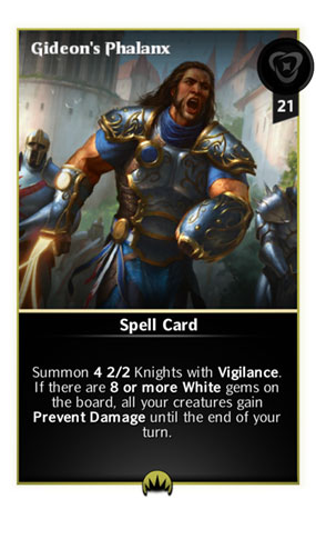 If there are 8 or more White gems on the board, all your creatures gain Prevent Damage until the end of your turn.