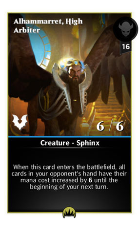 When this card enters the battlefield, all cards in your opponent’s hand have their mana cost increased by 6 until the beginning of your next turn.