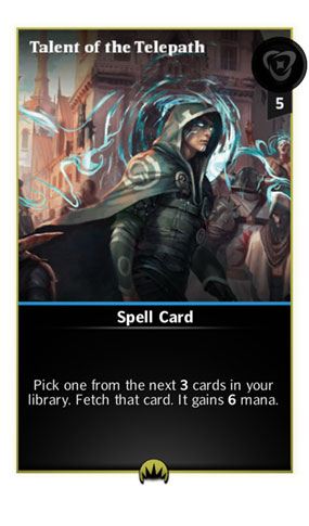 Activate 3: Fetch the next Spell from your library to your hand. The last spell you control in your hand is free.