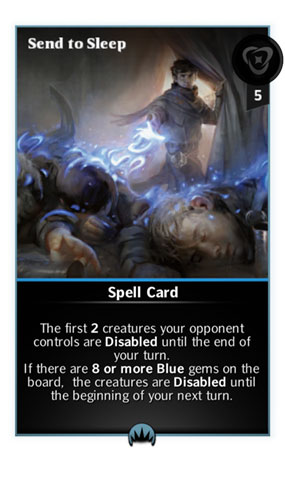 If there are 8 or more Blue gems on the board,  the creatures are Disabled until the beginning of your next turn.