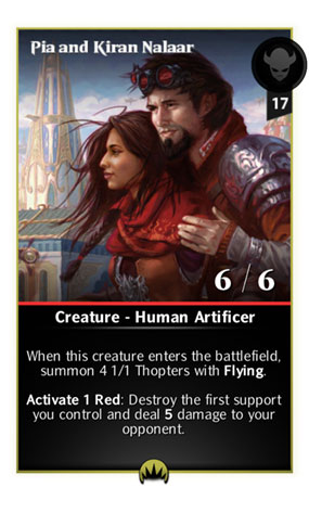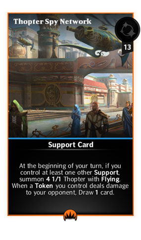 At the beginning of your turn, if you control a Support summon 4 1/1 Thopter with Flying.