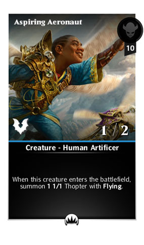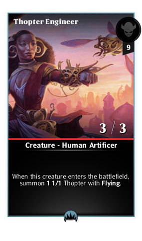 When this creature enters the battlefield, summon 1 1/1 Thopter with Flying.