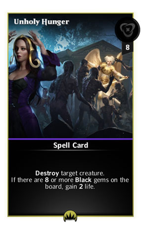 If there are 8 or more Black gems on the board, gain 3 mana.