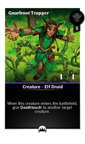 When this creature enters the battlefield, give Deathtouch to another target creature.