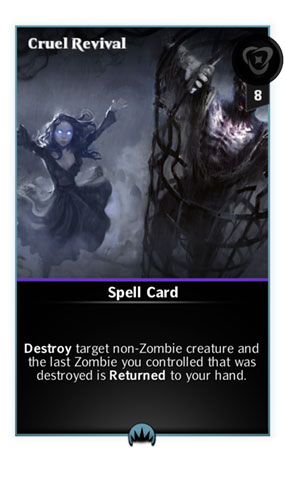 Destroy target non-Zombie creature and the last Zombie you controlled that was destroyed is Returned to your hand.