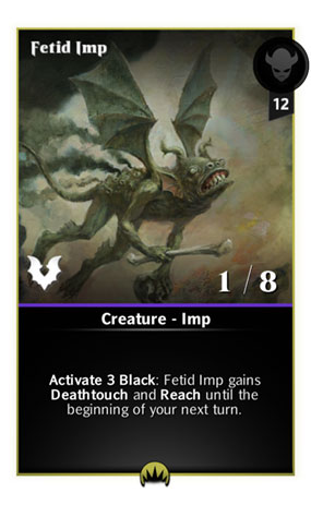 Activate 3 Black: Fetid Imp gains Deathtouch and Reach until the beginning of your next turn.