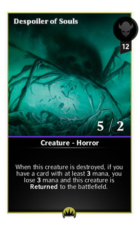When this creature is destroyed, if you have a card with at least 3 mana, you lose 3 mana and this creature is Returned to the battlefield.