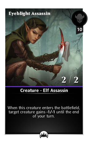 When this creature attacks, if your opponent doesn’t control an Elf Creature your opponent takes 1 damage.