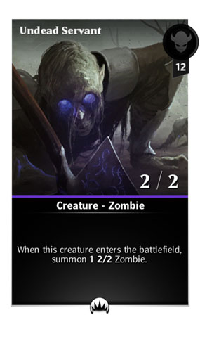 When this creature enters the battlefield, summon 1 2/2 Zombie.