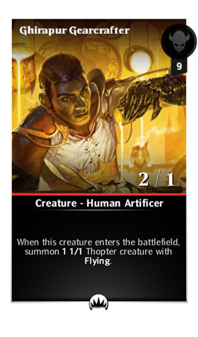 When this creature enters the battlefield, summon 1 1/1 Thopter creature with Flying.