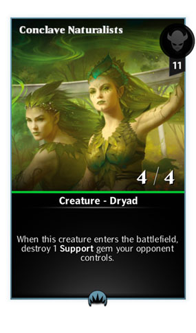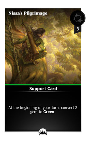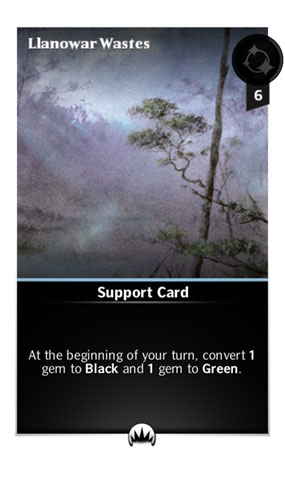 At the beginning of your turn, convert 1 gem to Green and 1 gem to Blue.