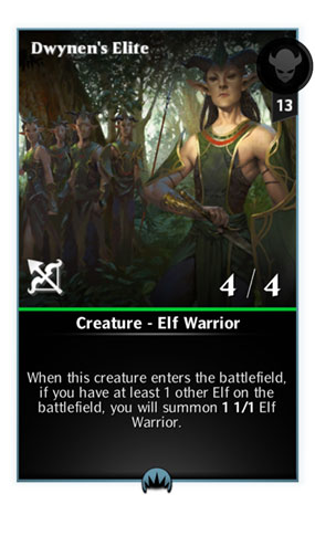 When this creature enters the battlefield, if you have at least 1 other Elf on the battlefield, you will summon 1 1/1 Elf Warrior.