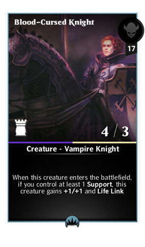 When this creature enters the battlefield, if you control at least 1 Support this creature gains +1/+1 and Life Link