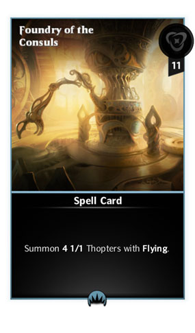 When this creature enters the battlefield, summon 4 1/1 Thopters with Flying.
