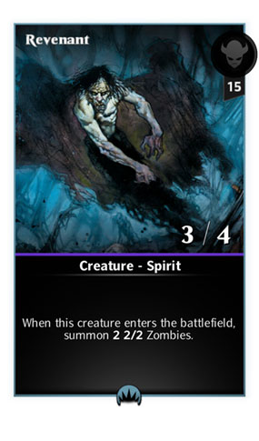 When this creature enters the battlefield, summon 2 2/2 Zombies.